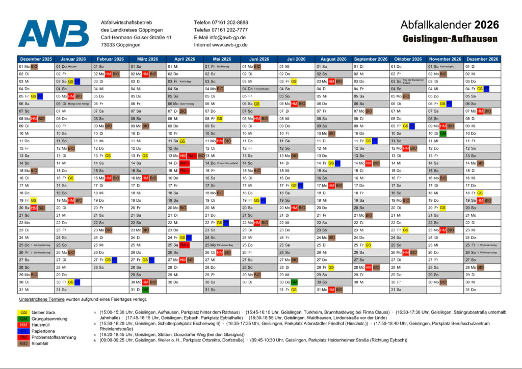 Abfallkalender 2026 für Aufhausen(PDF)
