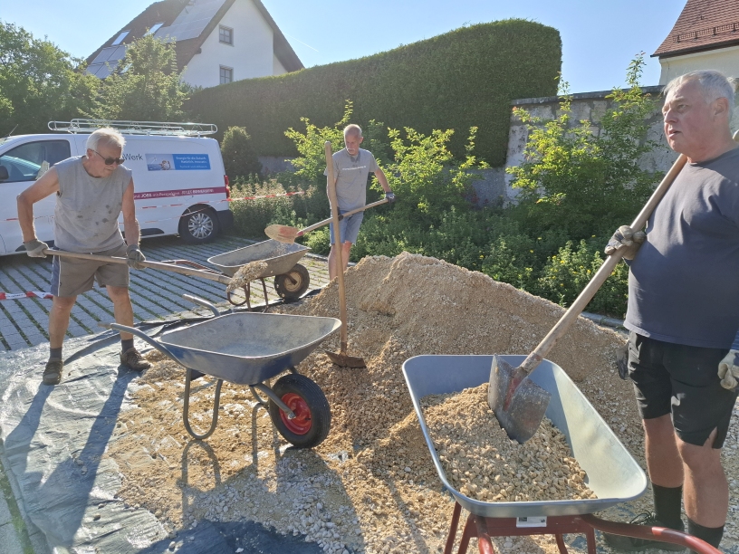 Hintergrund und Ziel des Ortsvorstehers Ludwig Kraus war, der Friedhof Aufhausen soll eine Sanierung bzw. eine Neu-Anlage der Wege, im nördlichen Bereich (Seiteneingang) bis zur Wasserstelle und zum südlichen Kolumbarium erhalten.