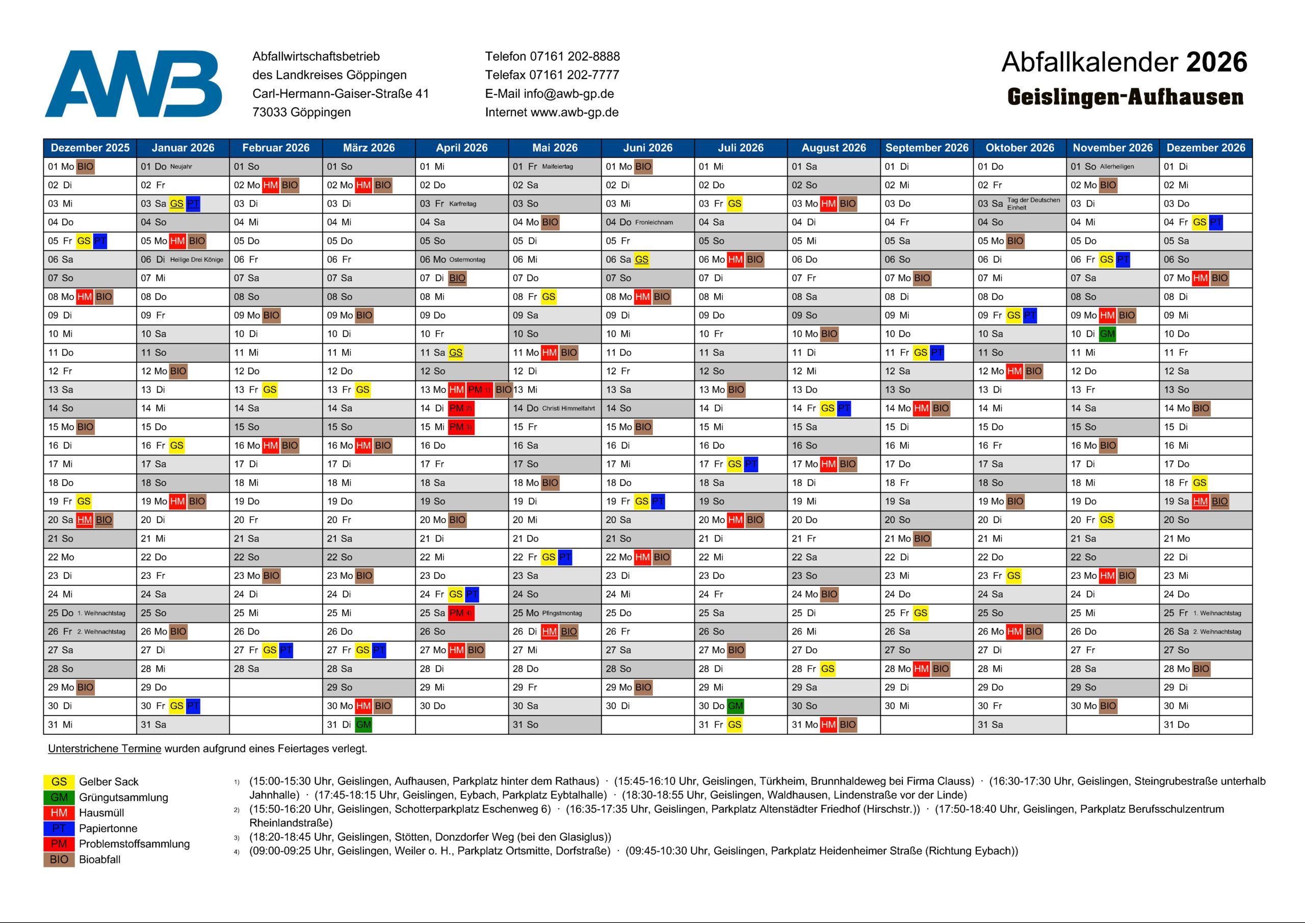 Abfallkalender 2026 für Aufhausen(PDF)