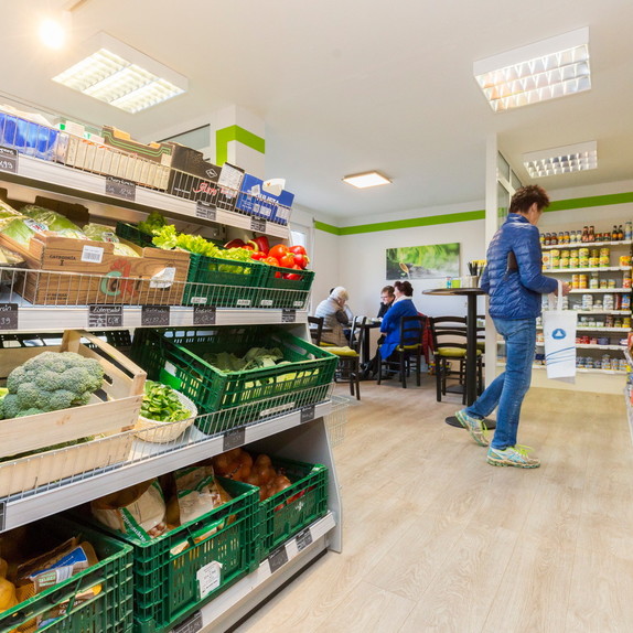 Im Sortiment sind vor allem regionale Produkte. 22 von 25 Lieferanten sind im Umkreis von 30 Kilometern ansässig. Kraus, Schellong und ihr Team bekommen beispielsweise Mehl aus Gosbach, Gewürze aus Treffelhausen, Backwaren ebenfalls aus Gosbach, Honig aus Blaubeuren. „Regionaler und nachhaltiger geht es nicht mehr“, sagt Kraus. Schwerpunkt auf regionale Produkte heißt aber auch: keine Erdbeeren im Winter. Wir müssen saisonal denken“, sagt Ludwig Kraus. Frei übersetzt also: Man kann nicht immer alles haben, was man gerade will. Dass bestimmte Gemüsesorten wie der Kürbis ihre eigene Zeit haben, sollte man respektieren. Kraus räumt aber auf Nachfrage ein, dass es eine Ausnahme gibt: Tomaten.