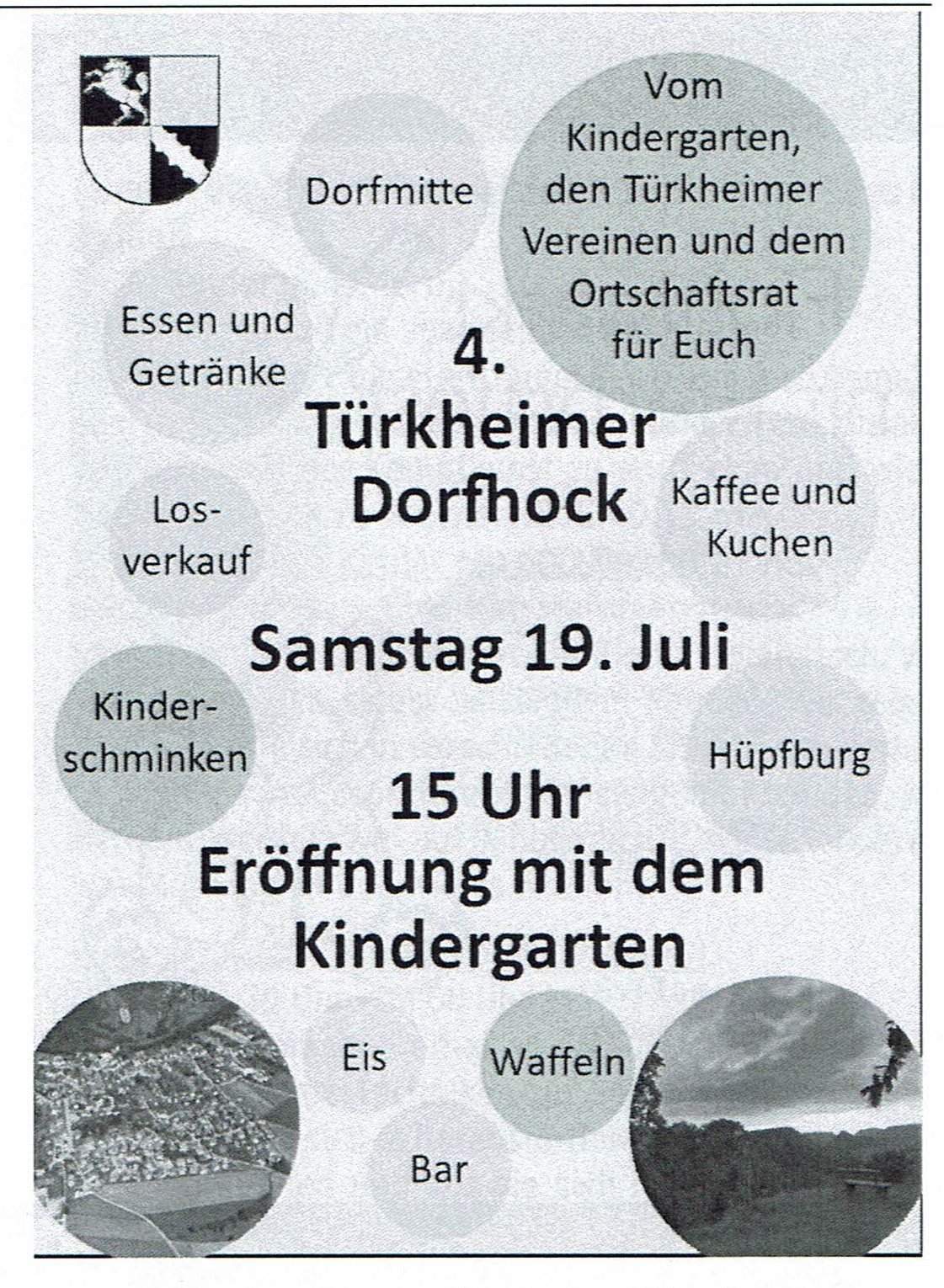 Dorfgemeinschaft Türkheim – Dorfhock Türkheim Termin Details Datum: 19. Juli 2025 Ort: Dorfmitte Türkheim Quelle: Veranstaltungskalender 2025 / Mitteilungsblatt vom 28.06.2025