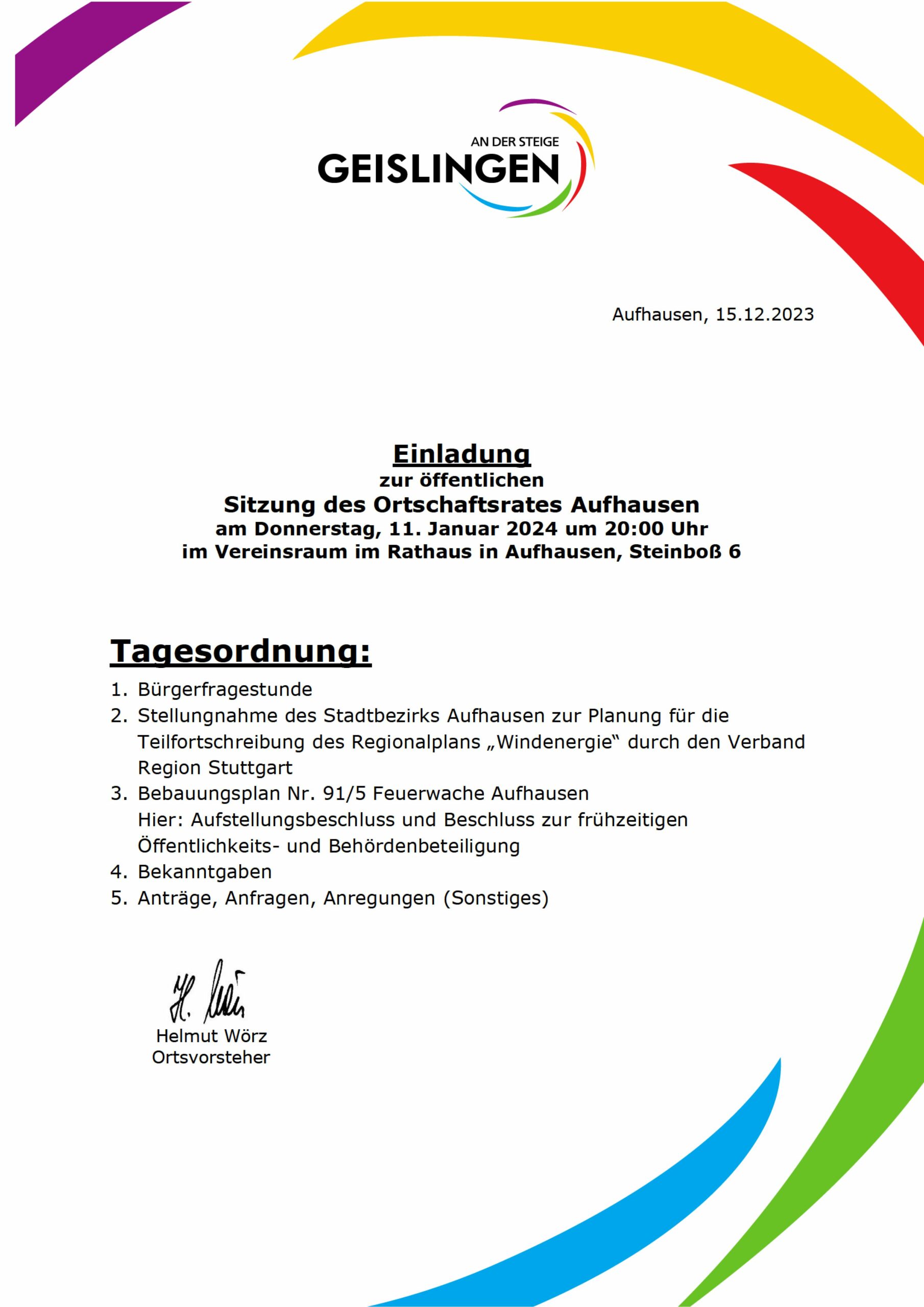 OR Aufhausen – Sitzungseinladung Termin Details Datum: 11. Januar 2024 20:00 – 22:00 Ort: Vereinsraum Rathaus Aufhausen