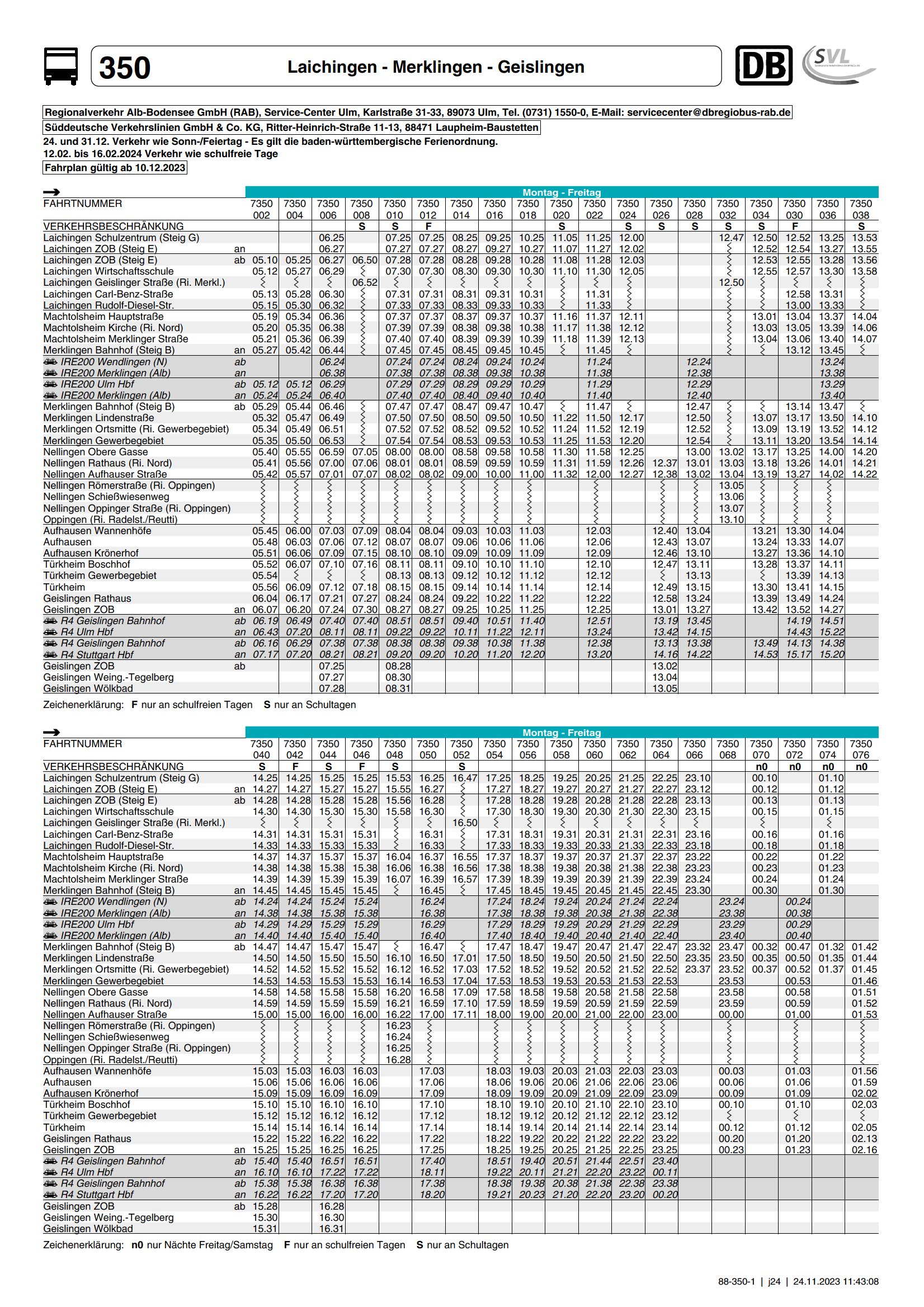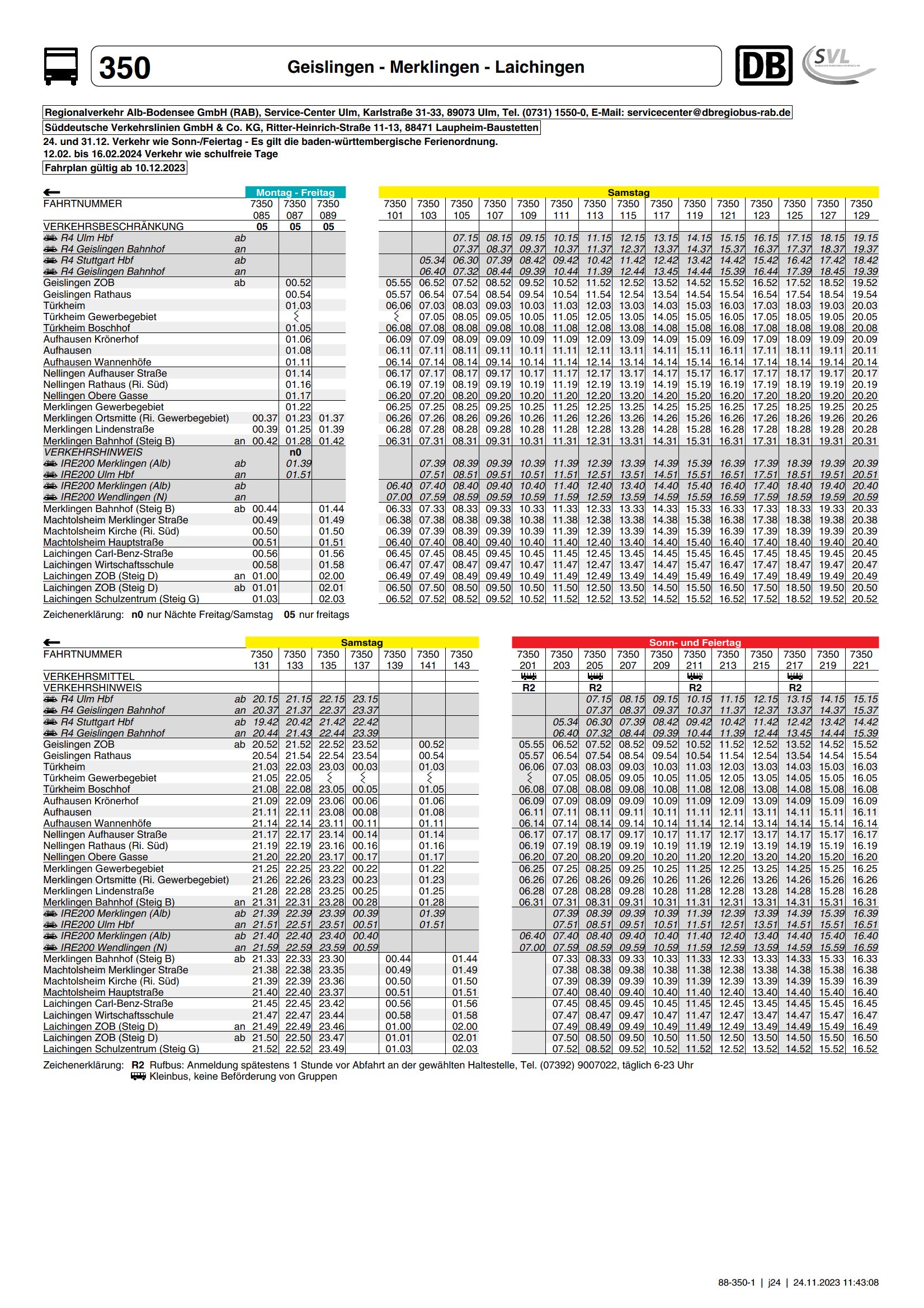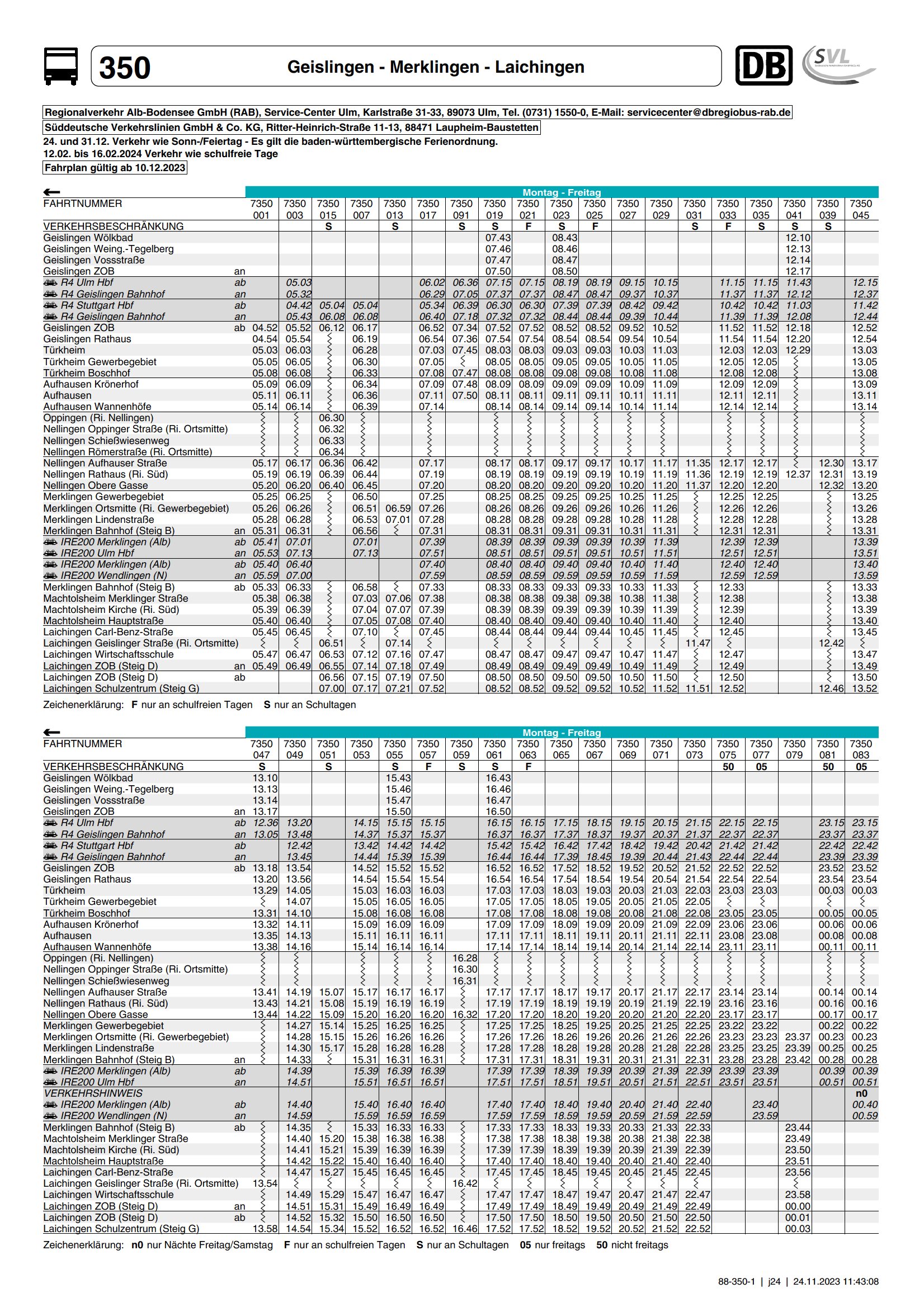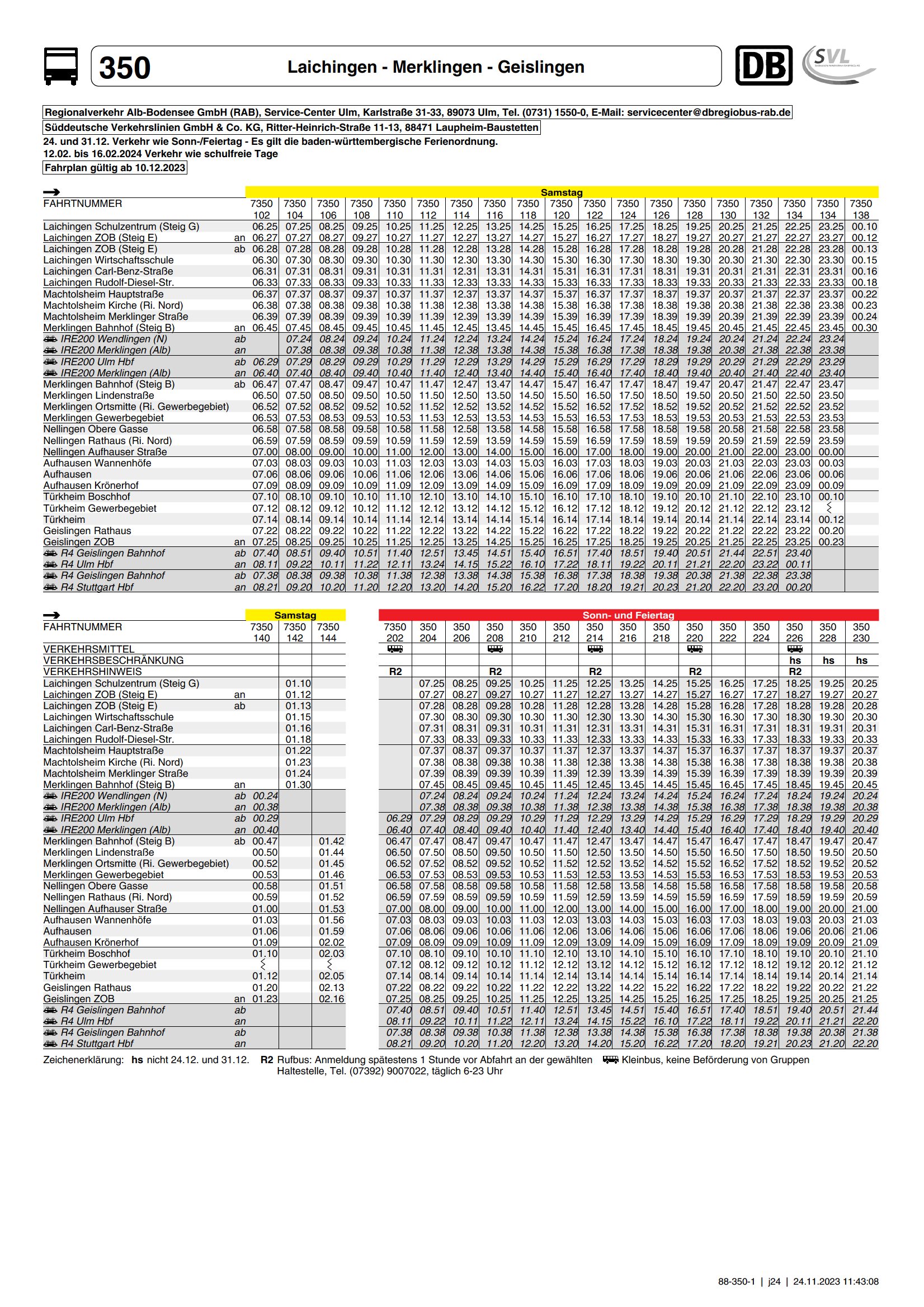 Bus-Fahrplan Linie 350 ab 12.12.2021 Geislingen-Laichingen via Aufhausen (Pdf)