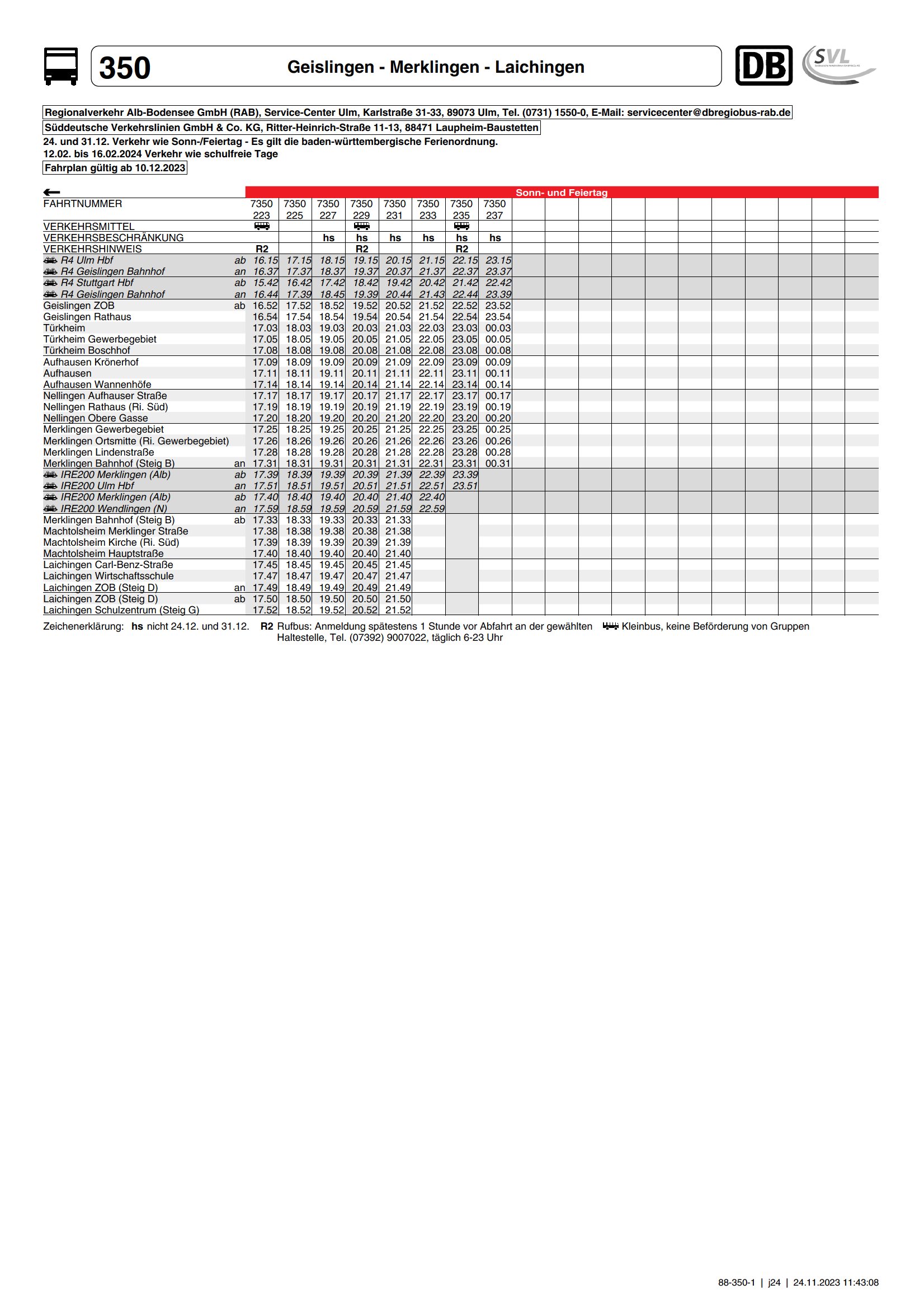 Busfahrplan Geislingen-Türkheim-Aufhausen-Merklingen-Laichingen und zurück ab 10.12.2023 (PDF)